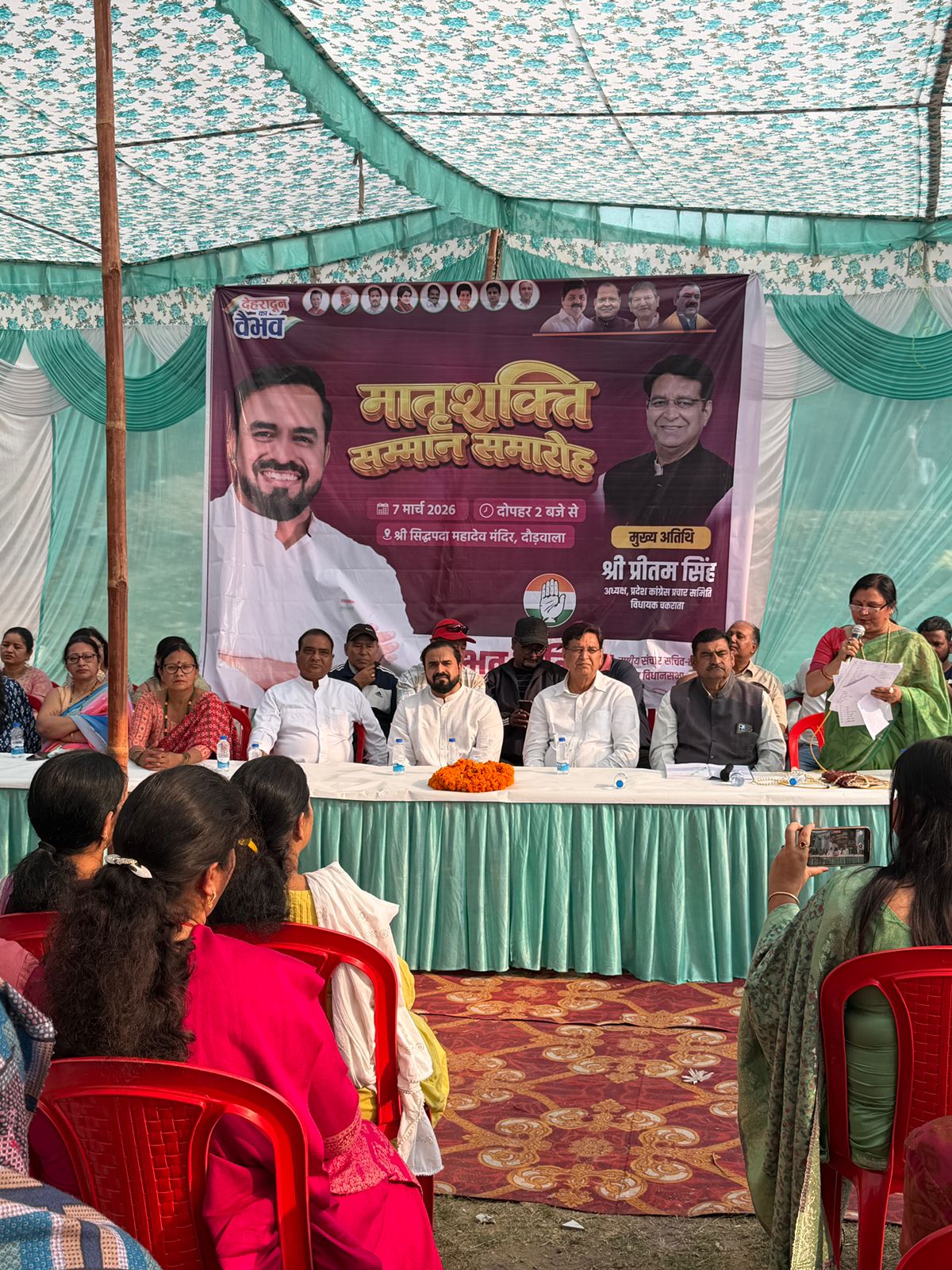 कार्यक्रम में प्रदेश कांग्रेस अभियान समिति के अध्यक्ष तथा चकराता विधायक प्रीतम सिंह मुख्य अतिथि के रूप में उपस्थित रहे। उन्होंने महिलाओं को सम्मानित करते हुए कहा कि समाज और राष्ट्र की प्रगति में मातृशक्ति की भूमिका अत्यंत महत्वपूर्ण है। महिलाओं के सहयोग और सहभागिता के बिना सशक्त समाज और समृद्ध राष्ट्र की कल्पना संभव नहीं है।