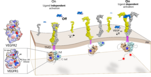 शोध के दौरान वैज्ञानिकों का ध्यान वैस्कुलर एंडोथेलियल ग्रोथ फैक्टर रिसेप्टर (VEGFR) परिवार पर केंद्रित हुआ, जो नई रक्त वाहिकाओं के निर्माण (एंजियोजेनेसिस) के लिए जिम्मेदार है। यह प्रक्रिया घाव भरने और भ्रूण के विकास के लिए जितनी आवश्यक है, ट्यूमर के विकास के लिए उतनी ही खतरनाक भी हो सकती है। शोधकर्ता इस बात को लेकर चकित थे कि इस परिवार के दो प्रमुख सदस्य, VEGFR1 और VEGFR2, एक जैसे होने के बावजूद बिल्कुल अलग व्यवहार करते हैं। जहाँ एक ओर VEGFR2 बिना किसी बाहरी संकेत के भी स्वतः सक्रिय होकर रक्त वाहिकाओं का निर्माण शुरू कर सकता है, वहीं VEGFR1 अधिक सांद्रता होने पर भी तब तक सक्रिय नहीं होता जब तक उसे लिगैंड का आदेश न मिले। यह रिसेप्टर एक ‘शांत एंजाइम’ के रूप में व्यवहार करता है और अपने साथी की तुलना में कहीं अधिक मजबूती से संकेतों को पकड़ता है।