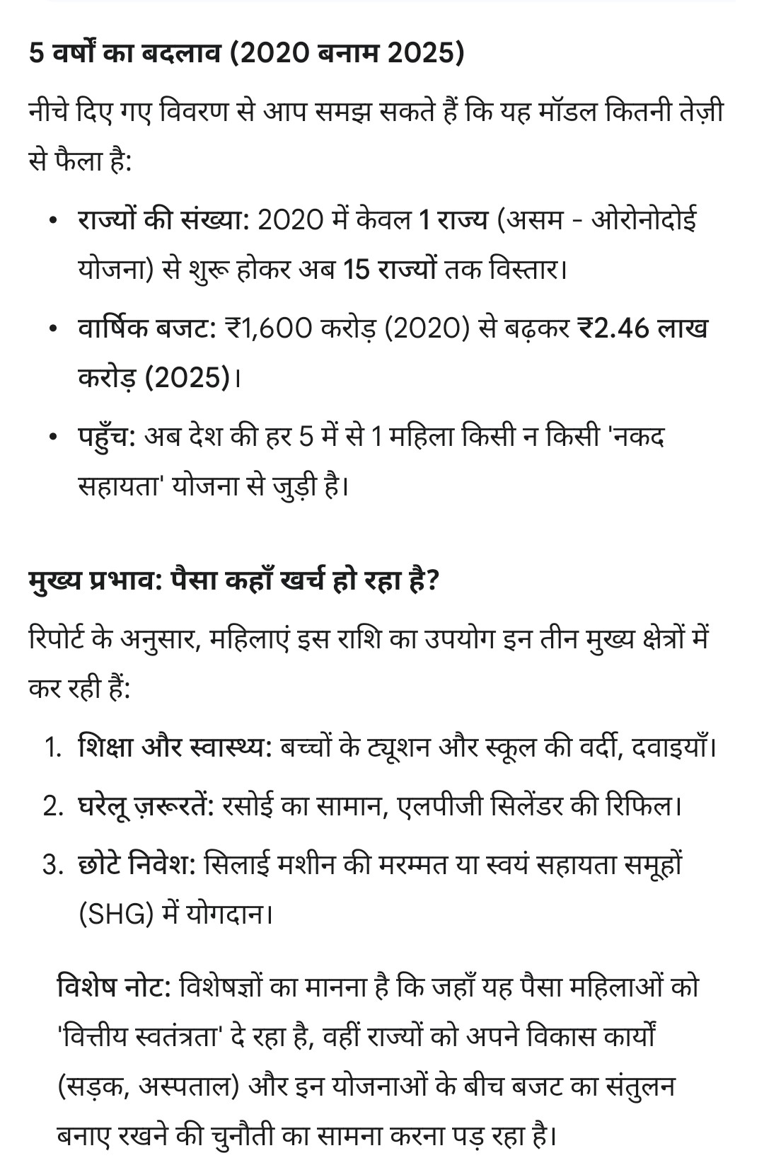 - खर्च की प्राथमिकताएं: शोध बताते हैं कि महिलाएँ इस पैसे का उपयोग मुख्य रूप से पोषण (भोजन), बच्चों की शिक्षा की फीस, स्वास्थ्य और बिजली/गैस के बिल भरने के लिए कर रही हैं।