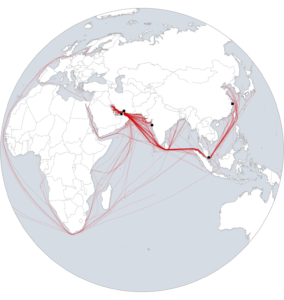 Dubai Mumbai Singapore Note: Tanker paths are since Jan. 1 and include all tankers and gas carriers. Source: Kpler and Spire.