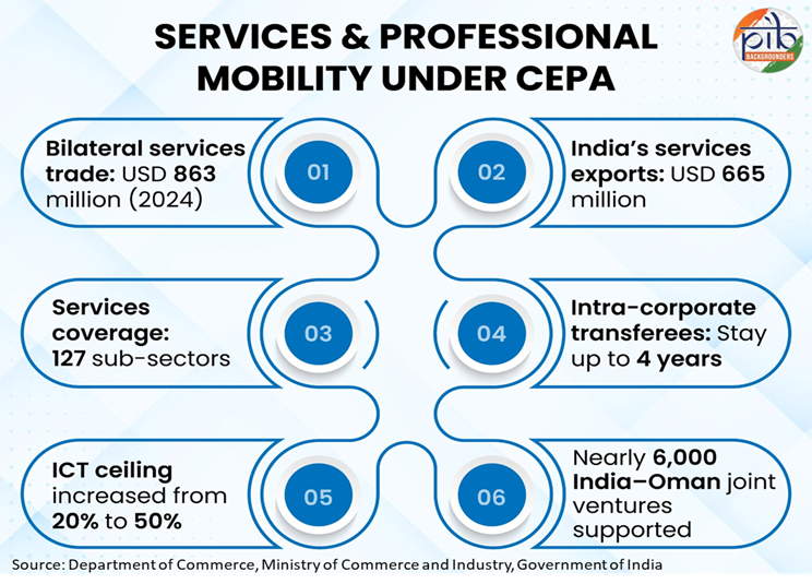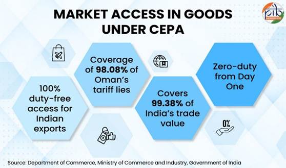 - The India–Oman CEPA provides a comprehensive framework covering trade in goods and services, investment, professional mobility, and regulatory cooperation.