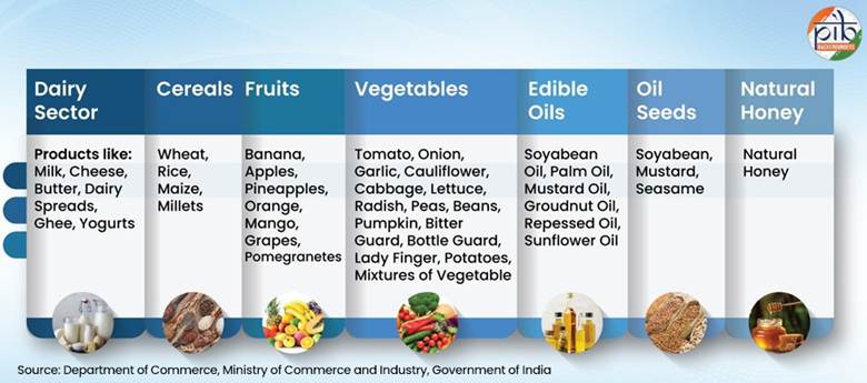 Key Agricultural products such as dairy, oilseeds, edible oils, honey, , fruits and vegetables. |