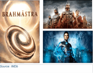 इस क्षेत्र में भारत का फिल्म तकनीक के क्षेत्र में किया गया विकास, प्रयोग से उत्कृष्टता की ओर एक दशक लंबी प्रगति को दर्शाता है। रा.वन (2011), बाहुबली: द बिगिनिंग (2015), और ब्रह्मास्त्र (2022) जैसी फिल्मों में मोशन कैप्चर और कंप्यूटर-जनरेटेड इमेजरी (सीजीआई) के इस्तेमाल ने उच्च-स्तरीय प्रोडक्शन में शुरुआती घरेलू क्षमता का प्रदर्शन किया।21 तब से, भारतीय स्टूडियो तेज़ी से आगे बढ़े हैं और फिल्म निर्माण में इमर्सिव स्टोरीटेलिंग अनुभव प्रदान करने के लिए वास्तविक समय में प्रस्तुत करने, वॉल्यूमेट्रिक कैप्चर और वर्चुअल-प्रोडक्शन के तरीकों को अपनाया गया है। इस बढ़ती तकनीकी परिपक्वता से वैश्विक पोस्ट-प्रोडक्शन और वीएफएक्स बाज़ारों में भारत की प्रतिस्पर्धिता मज़बूत हुई है। उन्नत रचनात्मक कार्यों को भारतीय प्रतिष्ठानों को आउटसोर्स करने वाले अंतर्राष्ट्रीय स्टूडियो की संख्या बढ़ रही है।