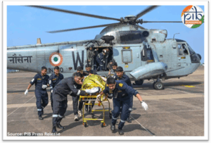 • परिचालन उपलब्धि (मार्च 2025): अरब सागर में तैनाती के दौरान, आईएनएस विक्रांत, आईएनएस दीपक के साथ, पनामा ध्वज वाले बल्क कैरियर एमवी हीलन स्टार से जुड़ी एक आपातकालीन स्थिति पर कार्रवाई के लिए तुरंत रवाना किया गया था। आईएनएस विक्रांत के एक सी किंग हेलीकॉप्टर ने एक चुनौतीपूर्ण चिकित्सा निकासी (मेडेवैक) को अंजाम दिया, जिसमें तीन घायल चालक दल के सदस्यों को एमवी हीलन स्टार से आईएनएस हंसा, गोवा पहुंचाया गया।
