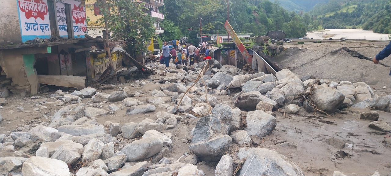 - थराली में बादल फटने से बड़ा नुकसान, कई घर-दुकान क्षतिग्रस्त।