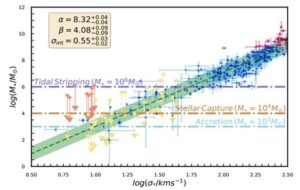 शोधकर्ताओं ने तारकीय विषमता का उपयोग किया, अर्थात् वेगों के गुणधर्म त्रिज्या और स्पर्शरेखीय दिशाओं में भिन्न होते हैं। इससे वास्तविक कक्षीय संरचनाओं का अनुमान लगाना संभव हुआ और प्रेक्षणों से तारकीय घटक को सीधे निर्धारित किया जा सका, साथ ही डार्क मैटर हेलो और ब्लैक होल द्रव्यमान को संयुक्त रूप से सीमित किया जा सका। द एस्ट्रोफिजिकल जर्नल में प्रकाशित अध्ययन में, उन्होंने इस प्रारूप को लघु गोलाकार आकाशगंगाओं के एक प्रतिनिधि नमूने पर लागू किया और ब्लैक होल द्रव्यमान पर ठोस सीमाएं प्राप्त कीं। महत्वपूर्ण रूप से, उन्होंने अपने नए परिणामों को ब्लैक होल मापों और दस्तावेजों से प्राप्त ऊपरी सीमाओं के साथ मिलाकर एक एकीकृत ब्लैक होल द्रव्यमान-तारकीय वेग प्रकीर्णन संबंध का निर्माण किया, जो लगभग ~10 से ~300 किमी प्रति सेकंड तक के प्रकीर्णन को कवर करता है, और ब्लैक होल द्रव्यमान में लगभग सात परिमाण के क्रम को समाहित करता है।