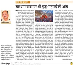 The escalating Iran-Israel conflict is no longer confined to West Asia; its ripple effects are now reaching India’s Char Dham Yatra in Uttarakhand. The pilgrimage, beginning in mid-April with the opening of Gangotri, Yamunotri, Kedarnath, and Badrinath, is expected to become significantly more expensive this year. Rising global crude oil and gas prices have increased fuel and LPG costs, which directly affect transportation, food, hotel services, and other essentials along the 1,300-km pilgrimage route. Bus operators have already warned of cancellations due to fuel and cooking gas shortages. The conflict may also reduce the number of foreign and NRI pilgrims because of disrupted international air routes and higher airfare. Since the Char Dham Yatra supports lakhs of livelihoods in Uttarakhand, any decline in pilgrim turnout could hurt the local economy. The article argues that government, administration, and tourism stakeholders must act together to protect this vital spiritual and economic lifeline. –Jay S. Rawat