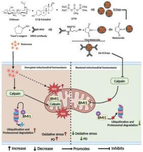 लक्षित नैनो-फ़ॉर्मूलेशन ने कैलपैन के माइटोकॉन्ड्रियल ट्रांसलोकेशन को बाधित किया, जिससे न्यूरॉन्स को रोटेनोन-प्रेरित माइटोकॉन्ड्रियल क्षति से बचाया जा सका। इसके अतिरिक्त लक्षित नैनो डिलीवरी सिस्टम ने रोडंट मॉडल में व्यवहार संबंधी कमियों को कम किया। इसके अतिरिक्त, अध्ययन में पहली बार पता चला है कि बीएमआई 1, पीआरसी 1 कॉम्प्लेक्स का एक सदस्य जो माइटोकॉन्ड्रियल होमियोस्टेसिस को नियंत्रित करता है, कैलपैन का एक सब्सट्रेट है। लक्षित नैनो-फॉर्मूलेशन ने कैलपैन के माध्यम से इसके क्षरण को रोककर बीएमआई 1 को पुनर्स्थापित किया।
