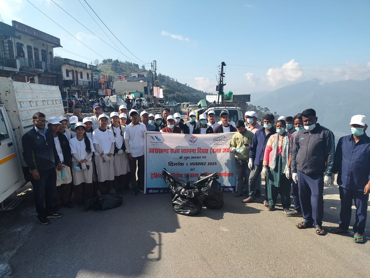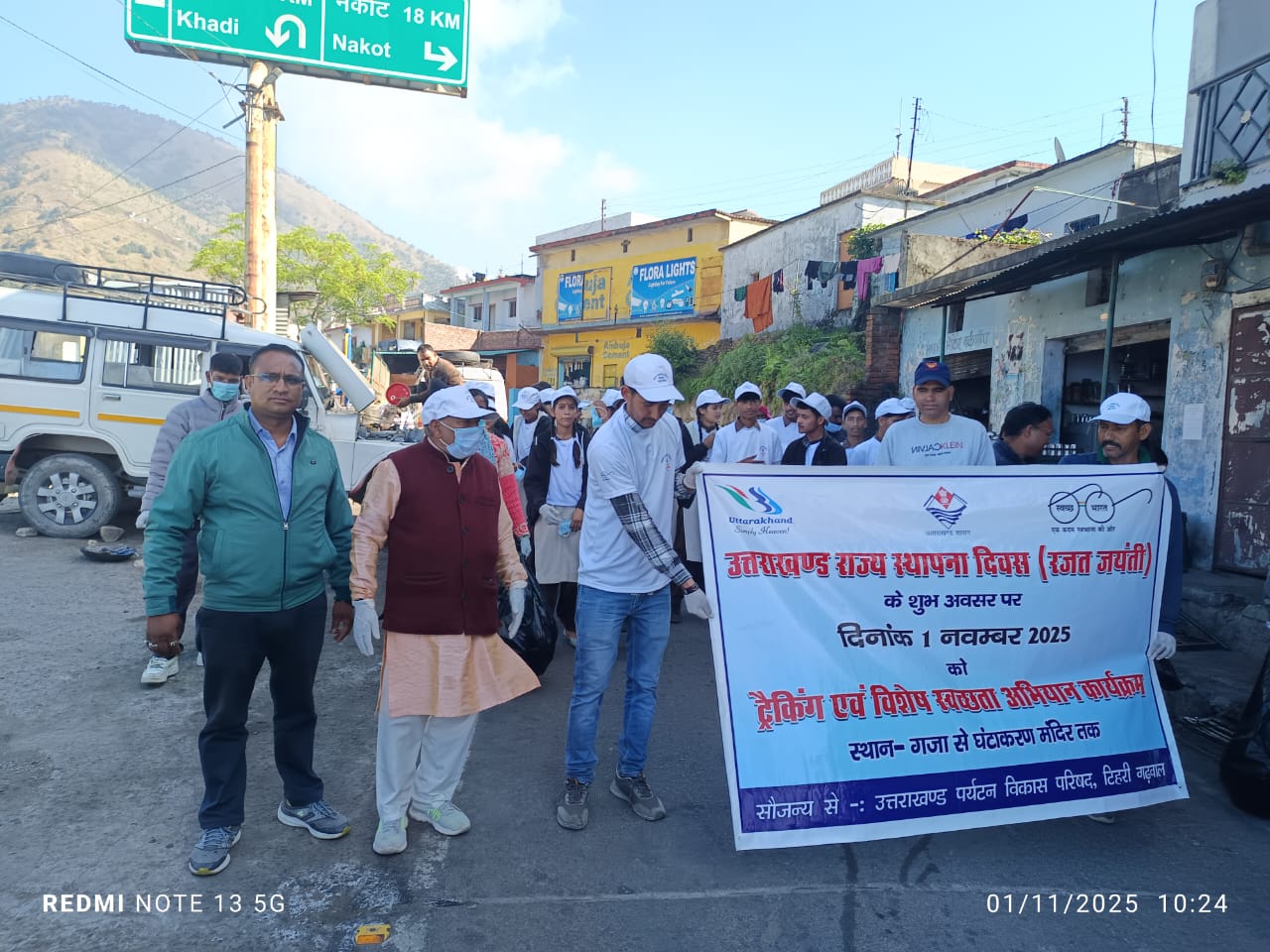 गजा (टिहरी), 1 नवंबर। उत्तराखंड राज्य स्थापना की रजत जयंती (25वीं वर्षगांठ) के उपलक्ष्य में पर्यटन विभाग, नई टिहरी द्वारा नगर पंचायत गजा के सहयोग से भव्य स्वच्छता एवं ट्रैकिंग कार्यक्रम का आयोजन किया गया। इस कार्यक्रम का मुख्य उद्देश्य स्थानीय नागरिकों और विद्यार्थियों में स्वच्छता, पर्यावरण संरक्षण और पर्यटन जागरूकता को बढ़ावा देना रहा।