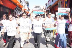 पूर्व निर्धारित कार्यक्रम के तहत बड़ी संख्या में महिला कांग्रेस कार्यकर्ता राजीव भवन में एकत्रित हुईं। इसके बाद वे शांतिपूर्ण ढंग से मार्च करते हुए निर्धारित मार्ग से गुजरीं। प्रदर्शन के दौरान कार्यकर्ताओं ने पारदर्शिता और जवाबदेही से जुड़े संदेशों वाली विशेष पोशाक पहनकर अपनी बात रखी।