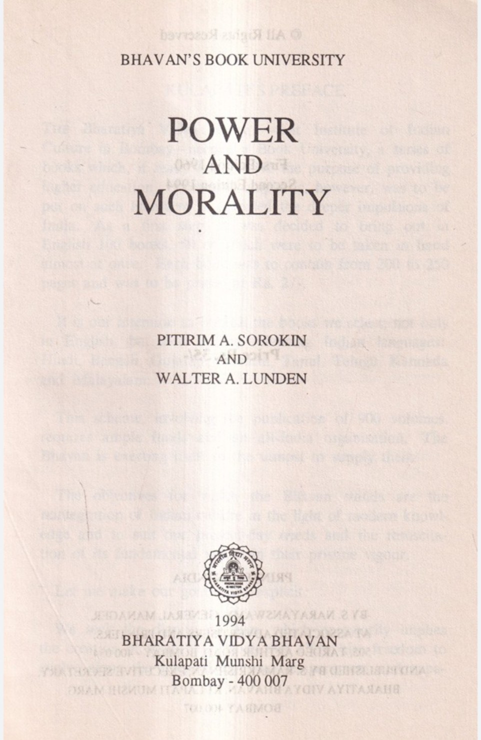 Power & Morality *अर्थात् सत्ता और नैतिकता का साथ बड़ी मुश्किल से मिलता और निभता है।इसी टाइटिल के साथ प्रकाशित इस पुस्तक में गंभीर शोध/ अध्ययन के उपरांत एक ऐसा समाजशास्त्रीय विश्लेषण प्रस्तुत किया गया है जिसका मुख्य तर्क यह है कि कुछ अपवादों को छोड़कर यही देखने में आया कि शासन- प्रशासन चलाने वाले ज्यादातर व्यक्तियों का बौद्धिक और नैतिक स्तर इतना घटिया होता है कि जिसके कारण समाज में उनकी कभी कोई प्रतिष्ठा नहीं बन पाती।