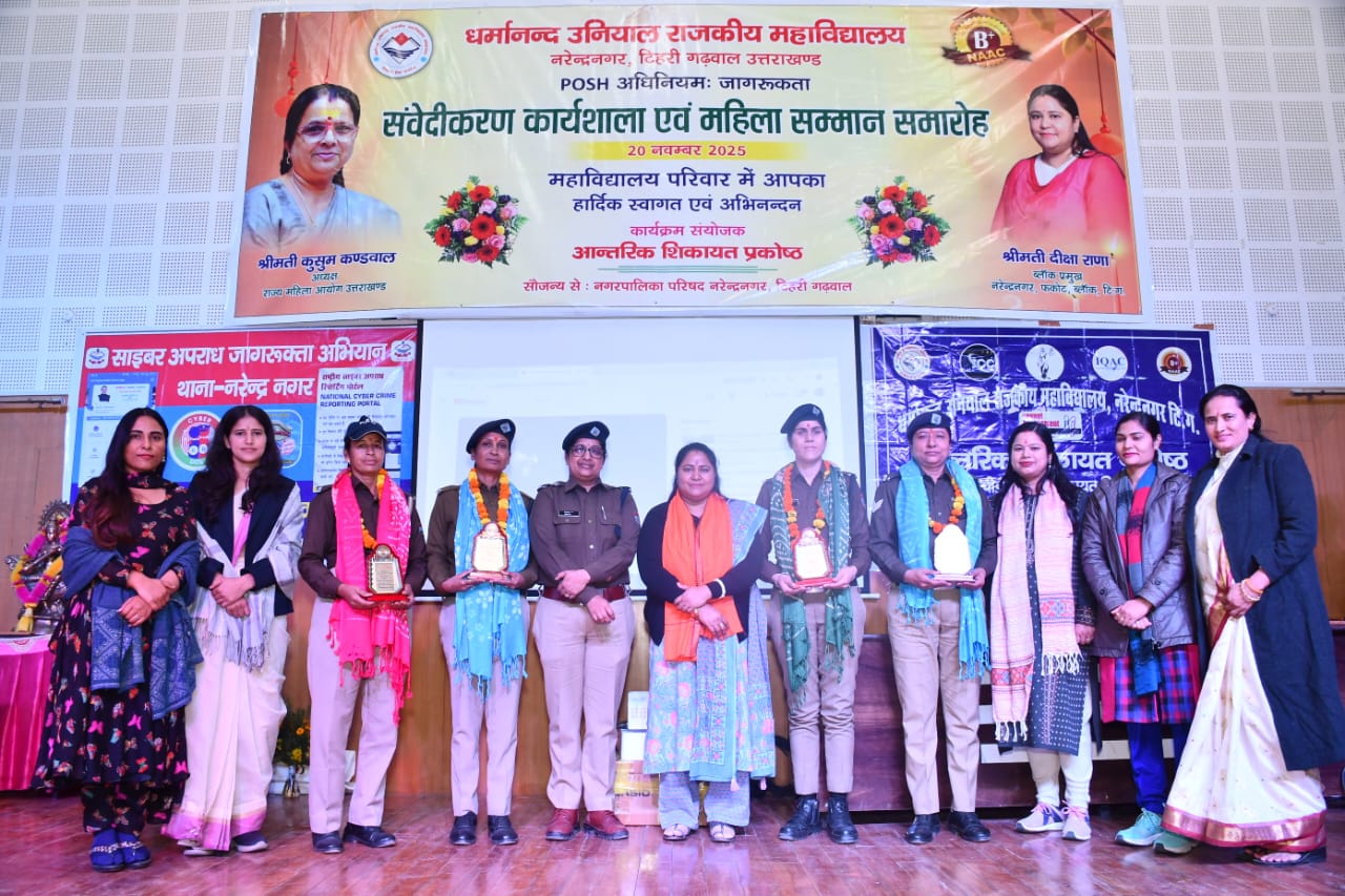 नरेंद्रनगर महाविद्यालय में महिला सम्मान समारोह एवं संवेदीकरण कार्यशाला आयोजित