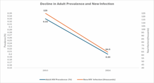 एचआईवी/एड्स से निपटने में भारत की यात्रा अनुकूल, नवाचार और साझा समर्पण की एक सम्मोहक कथा का प्रतीक है। प्रारंभिक राष्ट्रीय एड्स नियंत्रण कार्यक्रम के चरणों के मूलभूत प्रयासों से लेकर एनएसीपी-वी की दूरदर्शी महत्वाकांक्षाओं तक, राष्ट्र ने अधिकार-केंद्रित नीतियों, समुदायसंचालित रोकथाम रणनीतियों और व्यापक मीडिया पहलों के माध्यम से नेतृत्व का उदाहरण प्रस्तुत किया है। भारत में एड्स में वैश्विक औसत से अधिक गिरावट होना महत्वपूर्ण है, जिसे व्यापक परीक्षण, एंटीरेट्रोवायरल थेरेपी तक पहुंच में वृद्धि, उच्च जोखिम वाले समूहों तक केंद्रित पहुंच और कलंक से निपटने के लिए पहल द्वारा महत्वपूर्ण रूप से समर्थन प्राप्त किया गया है, जो सभी सहयोगी राज्य और सामुदायिक कार्यों के माध्यम से लागू किए गए हैं। एचआईवी/एड्स के खिलाफ यह स्थायी लड़ाई तत्काल संकट प्रबंधन से लेकर स्थायी ताकत, मानवाधिकारों की रक्षा करने और समुदाय की आवाजों को सबसे आगे सशक्त बनाने तक के दृढ़ विकास को दर्शाती है।