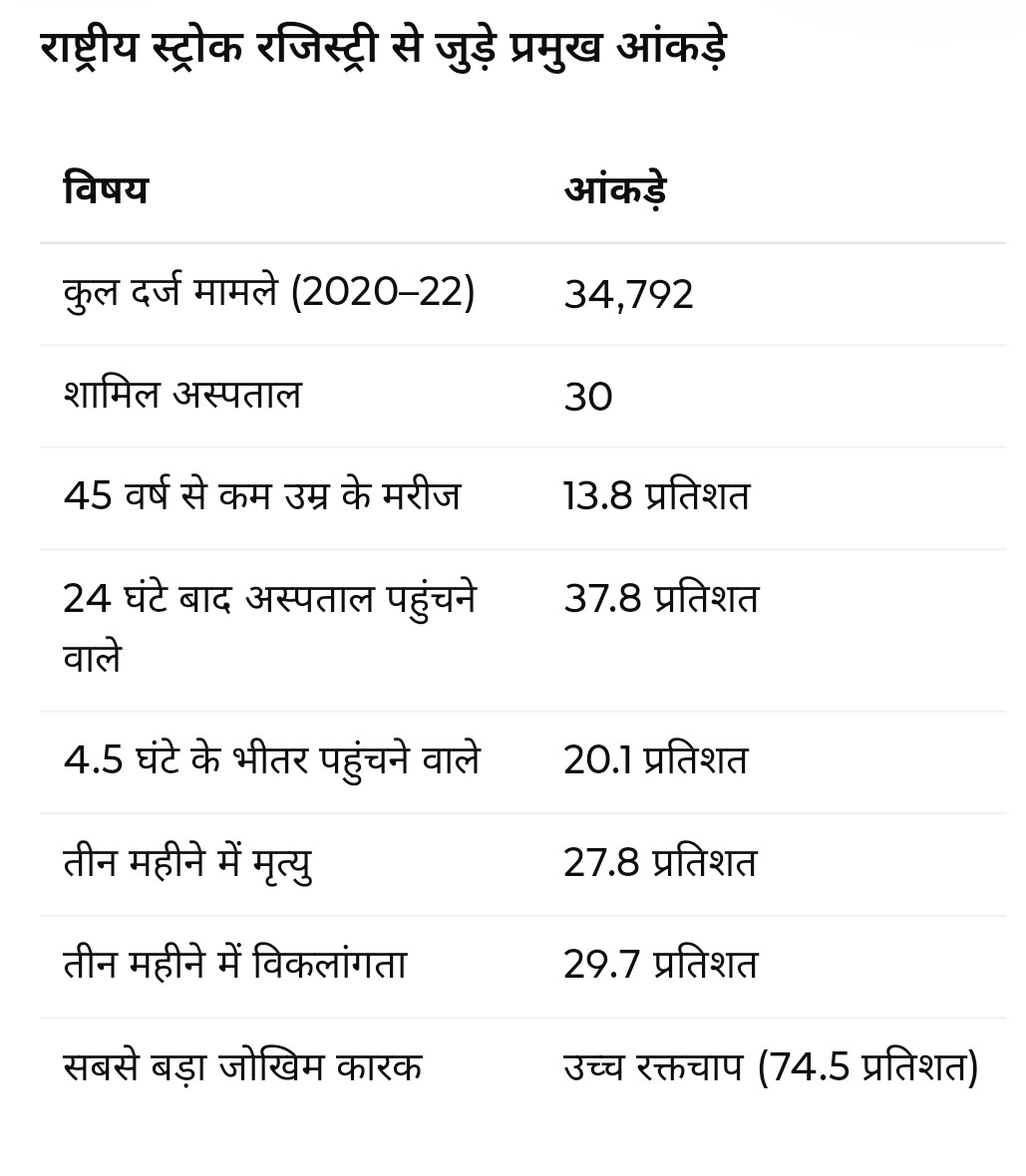 राष्ट्रीय स्ट्रोक रजिस्ट्री से जुड़े प्रमुख आंकड़े